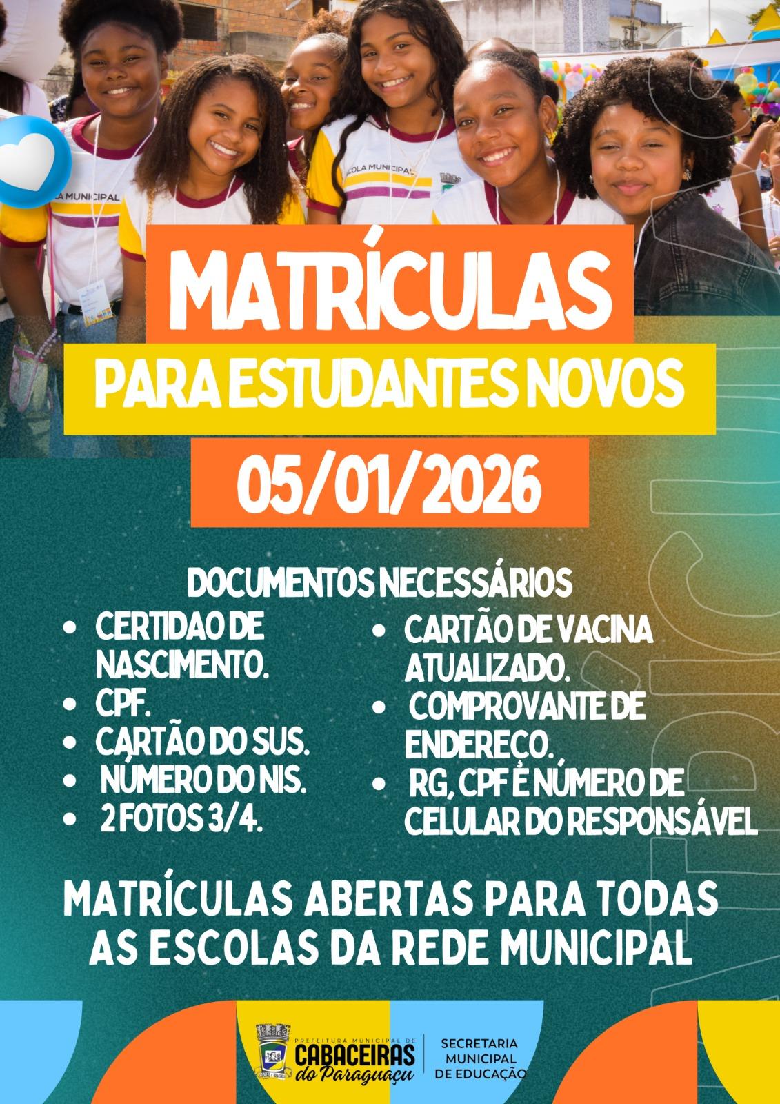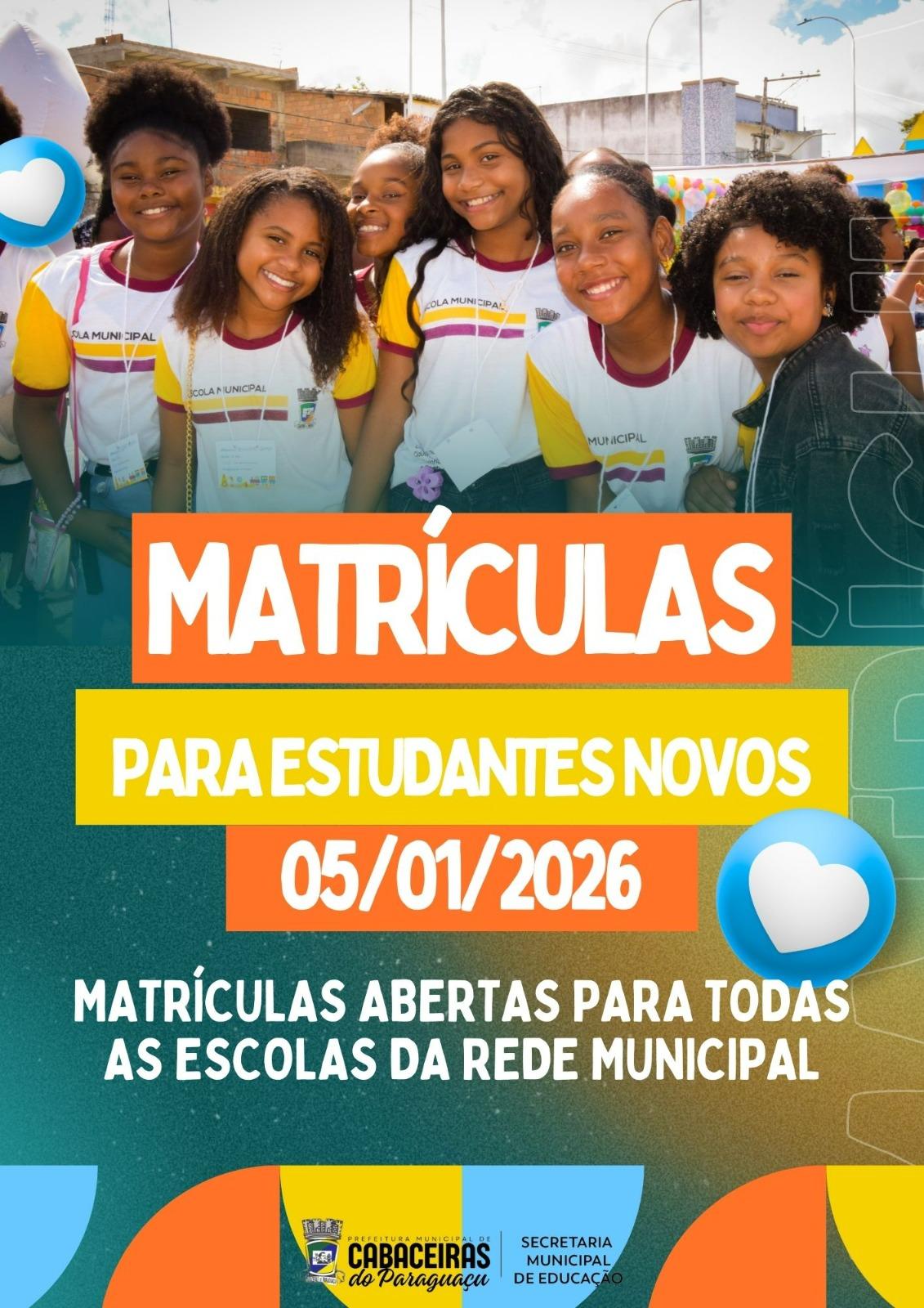 As matrículas para estudantes novos da Rede Municipal de Ensino de Cabaceiras do Paraguaçu já estão abertas! 📚✨